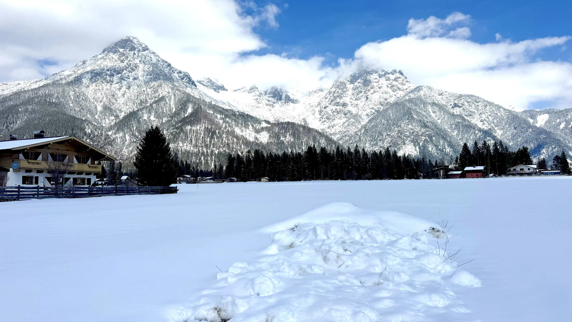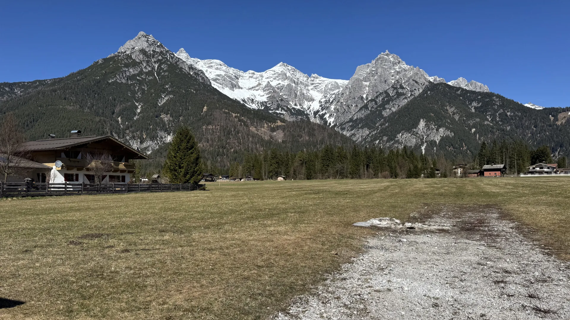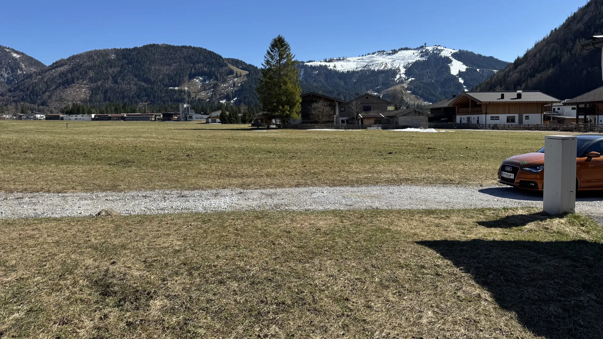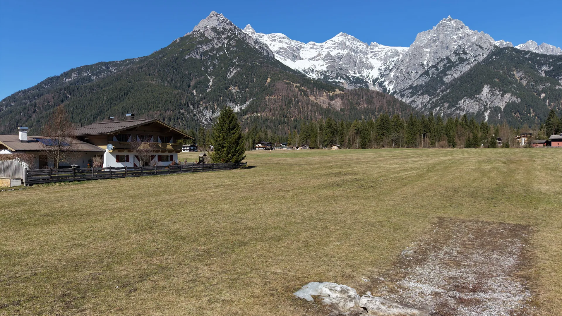Verkauft wird ein sonniges, voll erschlossenes, ruhiges Grundstück mit atemberaubendem Panorama auf die umliegende Bergwelt.